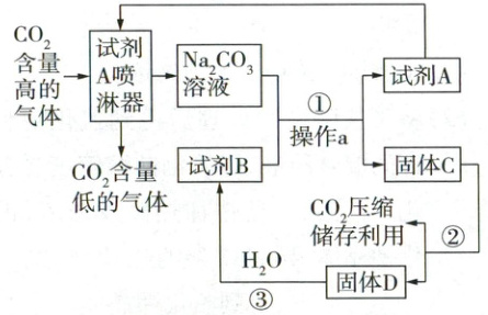 。(3)试剂 A 在捕集 CO₂ 过程中,采用喷淋的方式,其目的是