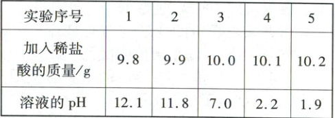 18. (5 分)为测定一瓶氢氧化钠溶液的溶质质量分数,小明取 20.0 g 此溶液于烧杯中,逐滴滴加溶质质量分数为 7.3%的稀盐酸,并随时测得反应后溶液的 pH,所得数据如下表: