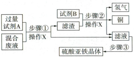 15. (5分)某化学小组进行铁的化学性质探究实验后,得到了含有硫酸铜、硫酸和硫酸亚铁的废液。该小组从废液中回收铜和硫酸亚铁晶体,实验方案如图所示。