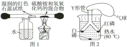 。(2)图2所示为验证燃烧条件的装置。(已知着火点:白磷$40^{\circ}C$,红磷$260^{\circ}C$)将Y形管放入$80^{\circ}C$热水中,可观察到管内红磷