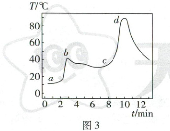 。(4)结合实验1现象可知,图3中$c→d$段温度升高的原因是