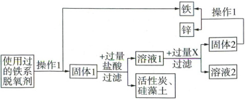 15. (5分)保护金属资源的有效途径之一是金属的回收利用。已知使用过的某铁系脱氧剂中含有氧化铁、氯化钠、碳酸钠、硅藻土、活性炭、铁粉。同学们设计了如图所示回收铁的流程。