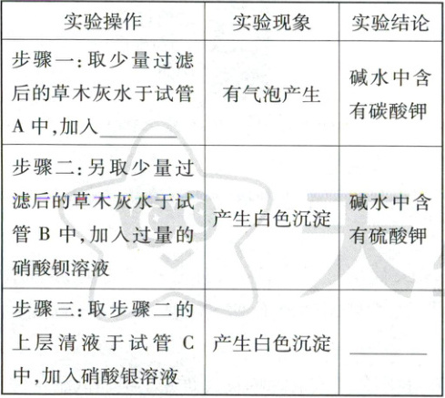 【结论】“碱水”的主要成分是碳酸钾、硫酸钾和氯化钾。