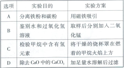 9. 下列实验方案不能达到实验目的的是(