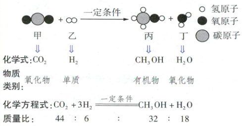 CO₂ + 3H₂$\xlongequal{一定条件}$CH₃OH + H₂O