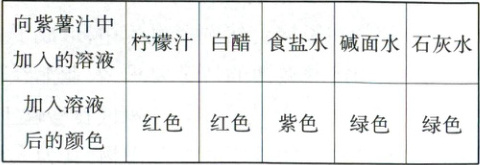 紫薯汁在遇到酸性或碱性溶液时,会呈现出不同的颜色