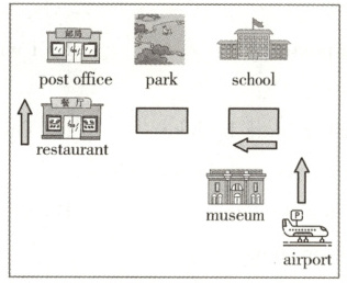 提示:从机场打车,在博物馆左转,直走然后在餐馆右转,你能看见右边有一所邮局,邮局后面就是我家。(开头已给出)