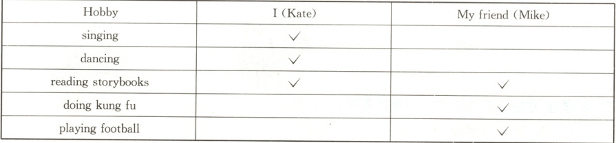 Hi! I’m Kate. I like singing and dancing. I like reading storybooks. Mike is my good friend. He likes reading storybooks,too. He likes doing kung fu and playing football. He often plays football with his father.