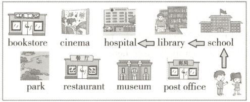1. —Excuse me,where is the library? — and . And then go straight again. You can find it the school.
