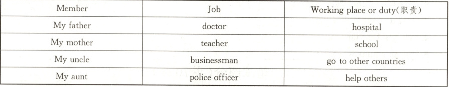请你根据下面表格中的内容提示介绍一下你的家人。可适当发挥想象。
