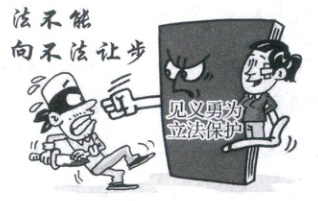 2. 2024 年上映的电影《第二十条》,讲述了我国刑法“正当防卫制度”背后的公理人情,以艺术的手段反映了“正当防卫”认定的变化,释放了国家支持正当防卫、鼓励见义勇为的信号,传递了“法不能向不法让步”的法治精神。材料及下面漫画表明(