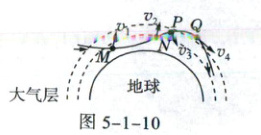 我国新一代载人飞船返回舱返回地球过程中,部分运动轨迹如图5-1-10中实线所示,M、N、P、Q是轨迹上的四个点。返回舱经过这四个点的速度分别为$v_1$、$v_2$、$v_3$、$v_4$,其中所标速度方向正确的是(