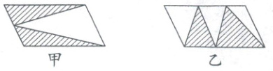 3. 下面是两个相同的平行四边形,那么两个图中的阴影部分面积相比,结果是(
