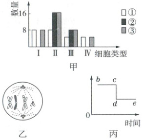 (1)据题图可知,图甲中的②在有些时期数目是 0,故表示染色单体;图中Ⅰ可代表体细胞或减数第二次分裂后期,Ⅱ可代表有丝分裂前期、中期或减数第一次分裂,Ⅲ可代表减数第二次分裂前期和中期,Ⅳ可代表减数第二次分裂完成,故一定存在同源染色体的是Ⅱ;若类型Ⅰ、Ⅱ、Ⅲ、Ⅳ的细胞属于同一次减数分裂,四种类型出现的先后顺序是Ⅰ(精原细胞)→Ⅱ(减数第一次分裂)→Ⅲ(减数第二次分裂前期和中期)→Ⅰ(减数第二次分裂后期)→Ⅳ(减数第二次分裂完成)。