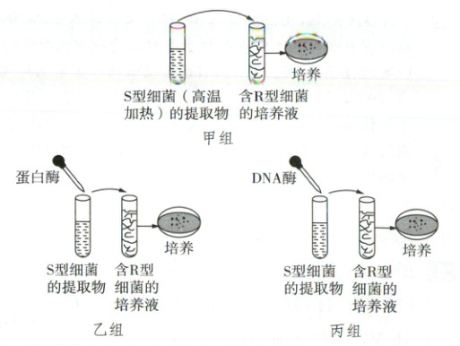 )A.若培养前在甲组培养基中加入$S$型细菌的 DNA,得到的菌落类型与丁不同