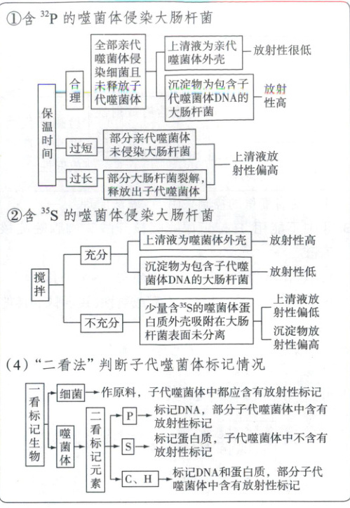 ∣ 一看标记生物 ⟶ 细菌 ⟶ 作原料,子代噬菌体中都应含有放射性标记