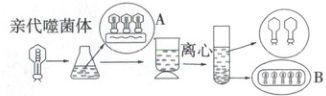 4.[不定项选择]如图为“噬菌体侵染大肠杆菌实验”过程的部分示意图。图中亲代噬菌体用$^{32}P$标记,A、B 中的方框代表大肠杆菌。下列叙述错误的是(