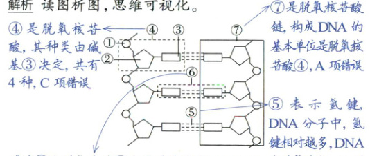 ⑤ 表示氢键,DNA 分子中,氢键相对越多,DNA 分子越稳定,B 项正确