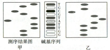 16. 图甲是用DNA测序仪测出的某DNA片段上一条脱氧核苷酸链中的碱基排列顺序(TGCGTATTGG),请回答下列问题。