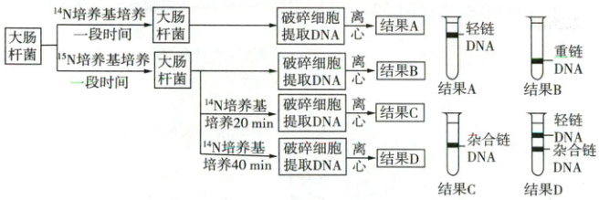 (1)在含$^{15}N$的培养基中培养若干代,使$DNA$双链均被$^{15}N$标记(试管①)。