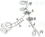 3. [2025·哈尔滨高一检测] 如图表示洋葱根尖分生区某细胞内正在发生的某种生理过程,图中甲、乙、丙均表示$DNA$分子,a、b、c、d均表示$DNA$链,A、B表示相关酶。下列相关叙述正确的是(