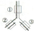 考题再现3 [2024·浙江1月选考]大肠杆菌在含有$^{3}H-$脱氧核苷培养液中培养,$^{3}H-$脱氧核苷掺入新合成的$DNA$链中,经特殊方法显色,可观察到双链都掺入$^{3}H-$脱氧核苷的$DNA$区段显深色,仅单链掺入的显浅色,未掺入的不显色。掺入培养中,大肠杆菌拟核$DNA$第$2$次复制时,局部示意图如图。$DNA$双链区段①②③对应的显色情况可能是(