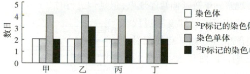 甲、丙、丁完成减数第二次分裂至少产生$3$个含$^{32}P$的细胞,细胞乙有$3$条染色单体含有$^{32}P$,完成减数第二次分裂产生的$2$个细胞都含有$^{32}P$,因此$4$个细胞完成分裂形成$8$个细胞,最多有$3$个细胞不含$^{32}P$,$D$项错误。
