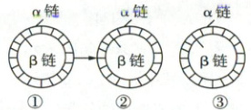 (人体细胞线粒体中某DNA的复制过程,①α链、β链,②α链、β链,③α链、β链。)
