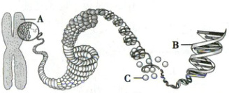 (3)题图中A是染色体,B是DNA,C是蛋白质。