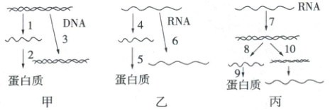D.病毒中不能单独进行图甲、乙或丙所代表的生理过程