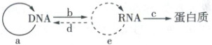 (3)烟草花叶病毒是RNA病毒,其RNA可以进行自我复制(过程e),还可以作为翻译的模板,合成病毒的蛋白质(过程c)。