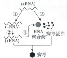 7. 某单链 RNA 病毒的遗传物质是正链 RNA (+RNA),该病毒感染宿主后,合成相应物质的过程如图所示,其中①~④代表相应的过程。下列叙述正确的是(
