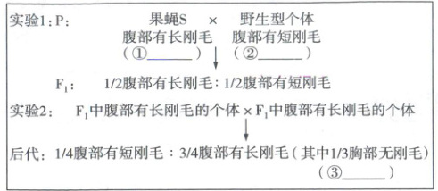 。(3)根据果蝇③和果蝇S遗传因子组成的差异,解释导致前者胸部无刚毛,后者胸部有刚毛的原因: