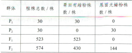 (1)分离 $F_1$自交所得$F_2$中,果面有蜡粉与果面无蜡粉植株的数量比约为3:1