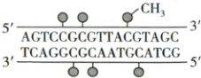 7. D 解析:由题意知,甲基化的胞嘧啶之后紧跟着一个鸟嘌呤碱基时称CpG甲基化,DNA双链反向平行,由5'端→3'端,题图中的甲基化均属于CpG甲基化,A项正确。CpG岛是富含CpG的一些区域,CpG岛往往位于基因转录起始位点附近,故CpG甲基化可发生于基因转录起始位点附近,影响转录的起始过程,因此,CpG甲基化可使细胞中mRNA的种类和数量发生改变,B项正确,D项错误。DNA甲基化修饰可能通过配子传递给后代,使后代出现同样的表型,C项正确。