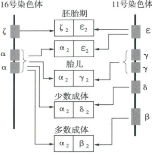 B.图中的多种血红蛋白基因之间均为非等位基因,其表达有时间顺序