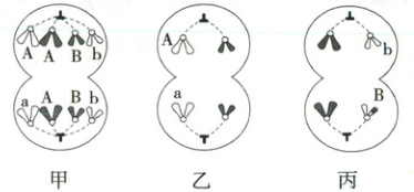 若姐妹染色单体分开后产生的两条染色体上存在等位基因,要根据基因所在的染色体片段的颜色区分是哪种变异,相同颜色时是基因突变,如图乙;出现不同颜色时是基因重组(染色体互换),如图丙