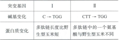 4. 科研人员在玉米育种过程中发现了两种突变类型,基因Ⅰ和基因Ⅱ均由同一原基因突变而来,这两种基因突变前后的碱基变化及对蛋白质的影响如下表所示。下列叙述正确的是(