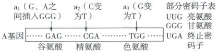 氨酸,而其他氨基酸不变,B项正确;a₂基因是由CGA变为