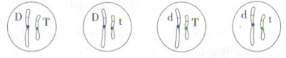 考题 4 [2020·天津卷]一个基因型为 $DdTt$ 的精原细胞产生了四个精细胞,其基因与染色体的位置关系如图。导致该结果最可能的原因是(