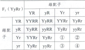)(4)在F₁黄色圆粒豌豆(YyRr)自交产生的F₂中,与F₁遗传因子组成完全相同的个体占1/4(