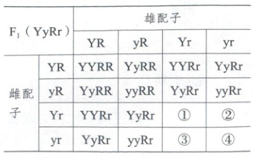 3. A 解析:无论正交还是反交,结果都一样,A项错误;对亲本进行实验时必须要对母本去雄,防止自花受粉,然后授以父本花粉,B项正确;表中①是$YYrr$,②是$Yyrr$,③是$Yyrr$,都是不同于亲本的重组类型,占$F_{2}$的$\frac{3}{16}$,C项正确;①的遗传因子组成为$YYrr$,④的遗传因子组成为$yyrr$,都是纯合子,性状能稳定遗传,②③的遗传因子组成都为$Yyrr$,都是杂合子,子代会出现性状分离,D项正确。
