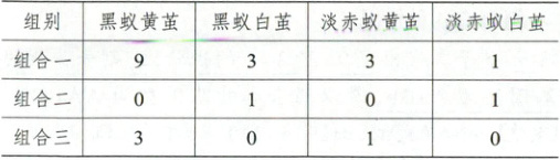 5. 在家蚕遗传中,黑色($A$)与淡赤色($a$)是有关蚁蚕(刚孵化的蚕)体色的相对性状,黄茧($B$)与白茧($b$)是有关茧色的相对性状,假设这两对相对性状自由组合,现有三对杂交组合,杂交后代的表型及数量比如下表所示。下列说法错误的是(
