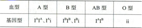例2 [2025·江苏徐州高一检测]人类的ABO血型由3个复等位基因($I^A$、$I^B$和i)决定,不同血型的基因组成如下表所示。下列相关叙述错误的是()