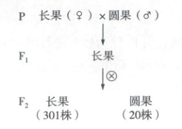 (1)由题图可知,$F_2$中长果$:$圆果$=301:20\approx 15:1$,是$9:3:3:1$的变式,说明控制果实形状的两对基因独立遗传,遵循自由组合定律。
