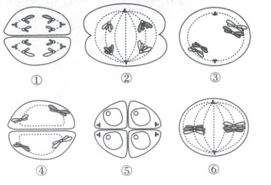 解析:①为减数分裂Ⅱ后期,②为减数分裂Ⅰ后期,③为减数分裂Ⅰ前期,④为减数分裂Ⅱ前期,⑤为减数分裂Ⅱ末期结束,⑥为减数分裂Ⅰ中期。