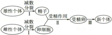 卵细胞中染色体数目减半,而Ⅱ过程受精作用通过精卵细胞