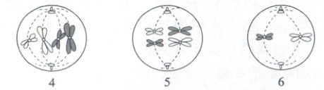 染色体排列整齐 $\begin{cases} 无同源染色体: 减数分裂Ⅱ, 如图6\\ 有同源染色体: \begin{cases} 是否排成两排: \begin{cases} 是: 减数分裂Ⅰ, 如图5\\ 否: 有丝分裂, 如图4 \end{cases} \end{cases} \end{cases}$