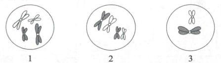 染色体相对散乱 $\begin{cases} 无: 减数分裂Ⅱ, 如图3\\ 有: \begin{cases} 是否联会: \begin{cases} 是: 减数分裂Ⅰ, 如图2\\ 否: 有丝分裂, 如图1 \end{cases} \end{cases} \end{cases}$