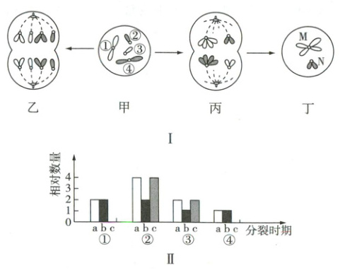 )A.图Ⅰ中甲、丁细胞染色体数目不同而核 DNA 数目相同